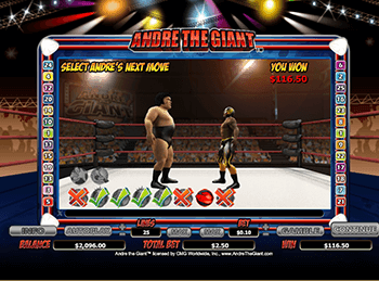 Легендарный армрестлер известный всем под именем Андре Гигант явится во всей красе перед геймерами демо игры, которую предлагает запустить игровой клуб Вулкан. Демонстрируя свое мастерство, популярный борец сумел на ринге победить немало соперников. Его награды и трофеи также об этом свидетельствуют. В компании Андре симулятор Andre The Giant предлагает вращать барабаны развлечения и окунуться в неповторимую атмосферу боев без правил. Удача чемпиона непременно передастся и вам. Под началом героя вас ждут головокружительные победы и щедрые призы, которыми наградит slot независимо от того будете вы играть бесплатно или играть на деньги.